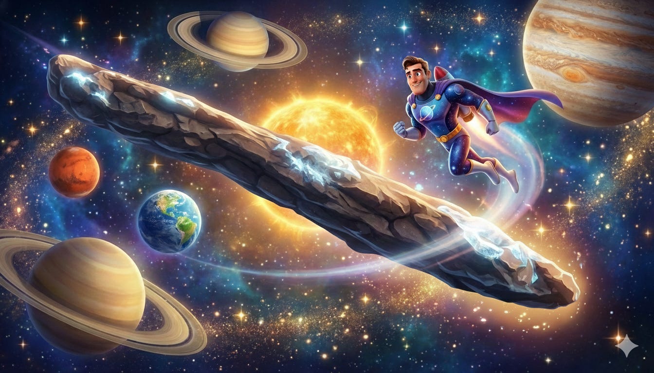 🥇 1I/’Oumuamua (2017) – The mysterious first visitor that looked like a weird cigar-shaped rock. Super controversial because astronomers still argue about what it really was!