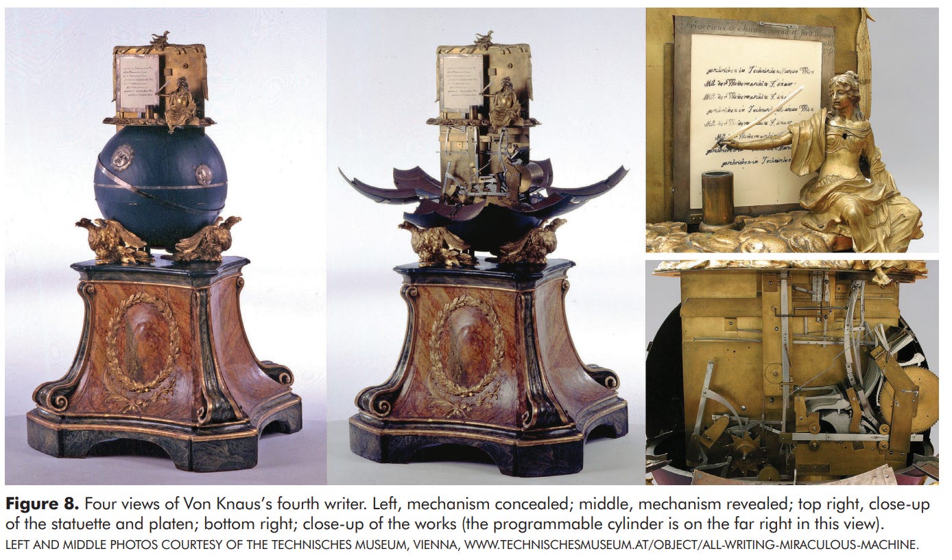 The Achievement: Von Knauss solved all of these problems mechanically. His android could write anything—not a pre-programmed phrase, but whatever you wanted, within its 107-word capacity.